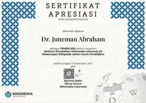 Dr. Juneman Abraham Psikolog sosial dan Profesor/Guru Besar, Psikologi, BINUS University. Pada 2015-2016, ia memperoleh hibah penelitian dari Pemerintah Indonesia (c.q. Kementerian Riset, Teknologi, dan Pendidikan Tinggi RI) untuk topik Otentisitas yang Tidak Otentik: Pengaruh Counterfeit Self Terhadap Perilaku Koruptif (Studi Proses Psikologis Perilaku Koruptif. Pada 2017, Harian Bernas pernah meliputnya sebagai seorang tokoh dalam rubrik Bernas Inspirator, serta mewawancarainya mengenai proses kejiwaan yang menghasilkan tingkah laku korupsi. Pada 2018, ia menghasilkan Gim Pengambilan Keputusan dalam konteks Corruption Game, yang terdaftar pada 2020 dalam Pencatatan Ciptaan oleh Ditjen Kekayaan Intelektual, Kementerian Hukum dan HAM. Pada 2019, ia diundang sebagai mitra bestari Jurnal Antikorupsi INTEGRITAS oleh Komisi Pemberantasan Korupsi (KPK). Pada 2020, ia berbicara dalam sebuah forum ilmiah internasional sebagai pembicara kunci dengan tajuk Psikologi Korupsi: Sejauh Mana Kita Telah Bergerak dalam Riset. Di samping itu, ia juga melakukan sejumlah perbincangan edukatif dengan masyarakat mengenai psikologi korupsi. Tulisan-tulisannya tentang topik ini turut direpublikasi oleh situs web Bung Hatta Anti-Corruption Award (BHACA). Pada 2021, ia menulis di Koran Tempo mengenai kontroversi Tes Wawasan Kebangsaan di KPK dari sudut pandang psikologi, dan memberikan Psikoedukasi Antikorupsi di Kementerian Keuangan RI. Pada 2022, ia memeringati HAKORDIA (Hari Antikorupsi Sedunia) dengan menulis 'Fake behavior strikes a chord with the corrupt'. Pada 2023, ia menerbitkan buku Melawan Korupsi Ilmu: Trajektori Sains Terbuka dan Psikoinformatika (ISBN 9786230273223). Meskipun keahlian spesialisnya adalah psikologi korupsi dan integritas, ia juga merupakan seorang generalis. Ia menaruh minat serta aktif melakukan ragam penelitian berkaitan dengan psikoinformatika, psikologi kebijakan publik, dan tema-tema psikologi sosial pada umumnya. Sebagai seorang advokat Sains Terbuka di Indonesia, ia menjadi pembicara tamu untuk Global Minds 2019 di KU Leuven dengan topik Penerbitan Akses Terbuka di Indonesia serta memberikan pandangan sesuai bidang keahliannya tentang apakah kebijakan riset dan publikasi di Indonesia berpihak pada keterbukaan pengetahuan. Ia menulis bersama teman-temannya untuk menyerukan Demokratisasikan Pengetahuan, Bebaskan Pengetahuan (sebuah kolaborasi penerjemahan), Bebaskanlah Mereka, serta Waspadai Sains Terbuka Palsu. Aktivitas akademiknya sebagai penelaah berbagai artikel ilmiah pada tingkat nasional dan internasional memperoleh rekognisi dari Publons (bagian dari Web of Science) sebagai penerima dua buah Awards, yakni Top Reviewers in Multidisciplinary (2017) dan Top Reviewers in Cross-Field (2018). * Puisi favorit: “Hujan Bulan Juni” (Sapardi Djoko Damono); Pandangan politik: Lihat syair lagu “Imagine” (John Lennon).