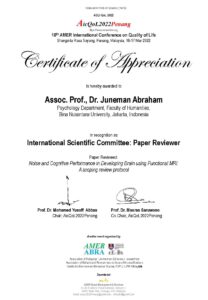 Dr. Juneman Abraham Psikolog sosial dan Profesor/Guru Besar, Psikologi, BINUS University. Pada 2015-2016, ia memperoleh hibah penelitian dari Pemerintah Indonesia (c.q. Kementerian Riset, Teknologi, dan Pendidikan Tinggi RI) untuk topik Otentisitas yang Tidak Otentik: Pengaruh Counterfeit Self Terhadap Perilaku Koruptif (Studi Proses Psikologis Perilaku Koruptif. Pada 2017, Harian Bernas pernah meliputnya sebagai seorang tokoh dalam rubrik Bernas Inspirator, serta mewawancarainya mengenai proses kejiwaan yang menghasilkan tingkah laku korupsi. Pada 2018, ia menghasilkan Gim Pengambilan Keputusan dalam konteks Corruption Game, yang terdaftar pada 2020 dalam Pencatatan Ciptaan oleh Ditjen Kekayaan Intelektual, Kementerian Hukum dan HAM. Pada 2019, ia diundang sebagai mitra bestari Jurnal Antikorupsi INTEGRITAS oleh Komisi Pemberantasan Korupsi (KPK). Pada 2020, ia berbicara dalam sebuah forum ilmiah internasional sebagai pembicara kunci dengan tajuk Psikologi Korupsi: Sejauh Mana Kita Telah Bergerak dalam Riset. Di samping itu, ia juga melakukan sejumlah perbincangan edukatif dengan masyarakat mengenai psikologi korupsi. Tulisan-tulisannya tentang topik ini turut direpublikasi oleh situs web Bung Hatta Anti-Corruption Award (BHACA). Pada 2021, ia menulis di Koran Tempo mengenai kontroversi Tes Wawasan Kebangsaan di KPK dari sudut pandang psikologi, dan memberikan Psikoedukasi Antikorupsi di Kementerian Keuangan RI. Pada 2022, ia memeringati HAKORDIA (Hari Antikorupsi Sedunia) dengan menulis 'Fake behavior strikes a chord with the corrupt'. Pada 2023, ia menerbitkan buku Melawan Korupsi Ilmu: Trajektori Sains Terbuka dan Psikoinformatika (ISBN 9786230273223). Meskipun keahlian spesialisnya adalah psikologi korupsi dan integritas, ia juga merupakan seorang generalis. Ia menaruh minat serta aktif melakukan ragam penelitian berkaitan dengan psikoinformatika, psikologi kebijakan publik, dan tema-tema psikologi sosial pada umumnya. Sebagai seorang advokat Sains Terbuka di Indonesia, ia menjadi pembicara tamu untuk Global Minds 2019 di KU Leuven dengan topik Penerbitan Akses Terbuka di Indonesia serta memberikan pandangan sesuai bidang keahliannya tentang apakah kebijakan riset dan publikasi di Indonesia berpihak pada keterbukaan pengetahuan. Ia menulis bersama teman-temannya untuk menyerukan Demokratisasikan Pengetahuan, Bebaskan Pengetahuan (sebuah kolaborasi penerjemahan), Bebaskanlah Mereka, serta Waspadai Sains Terbuka Palsu. Aktivitas akademiknya sebagai penelaah berbagai artikel ilmiah pada tingkat nasional dan internasional memperoleh rekognisi dari Publons (bagian dari Web of Science) sebagai penerima dua buah Awards, yakni Top Reviewers in Multidisciplinary (2017) dan Top Reviewers in Cross-Field (2018). * Puisi favorit: “Hujan Bulan Juni” (Sapardi Djoko Damono); Pandangan politik: Lihat syair lagu “Imagine” (John Lennon).